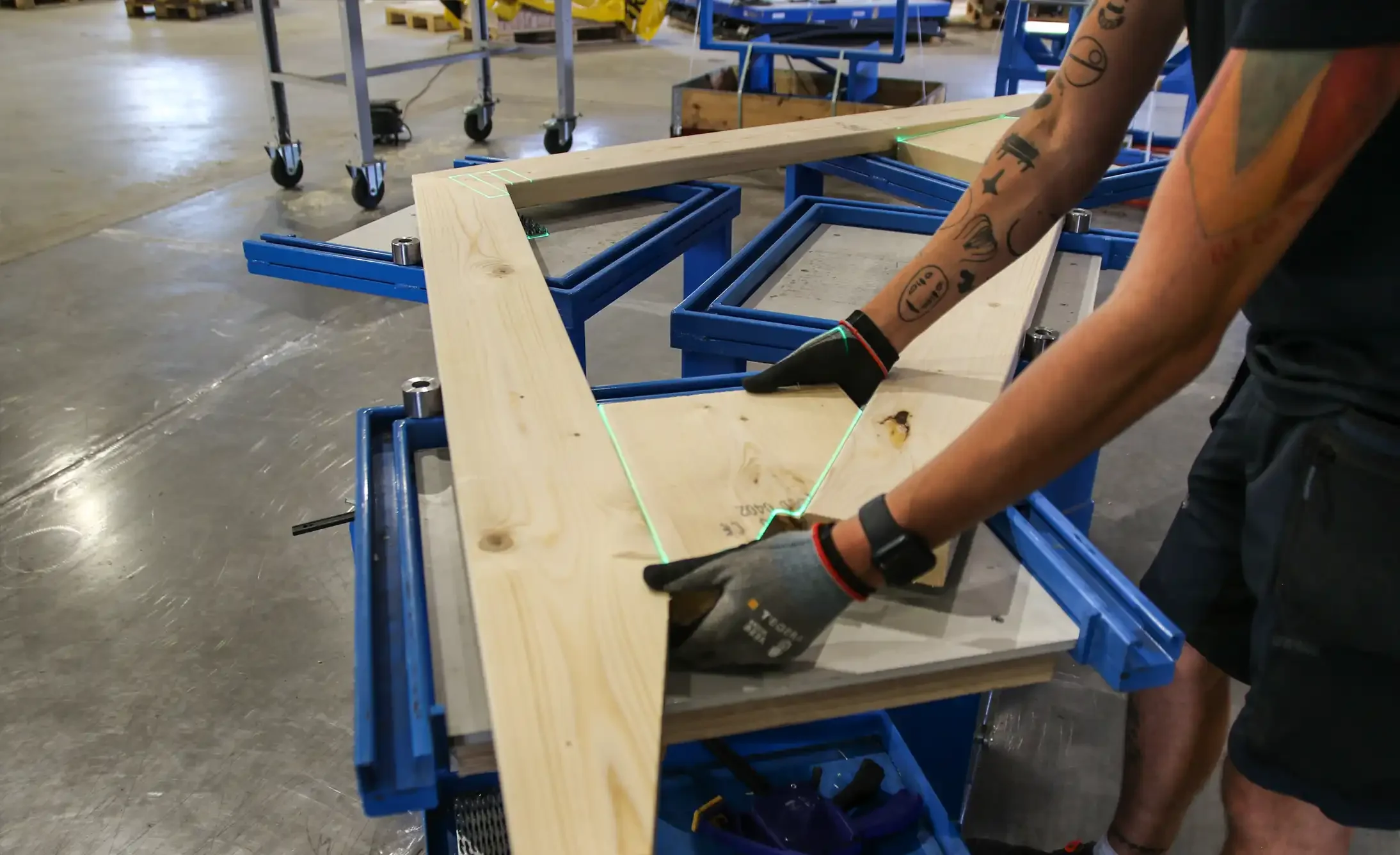 Och självklart lyfter vi också det som tar form i produktionen – från råvara till kvalitativa slutprodukter, där produktionen av byggstommar är en stor del. Trä som blir till något mer, genom kunskap, omsorg och långsiktighet.